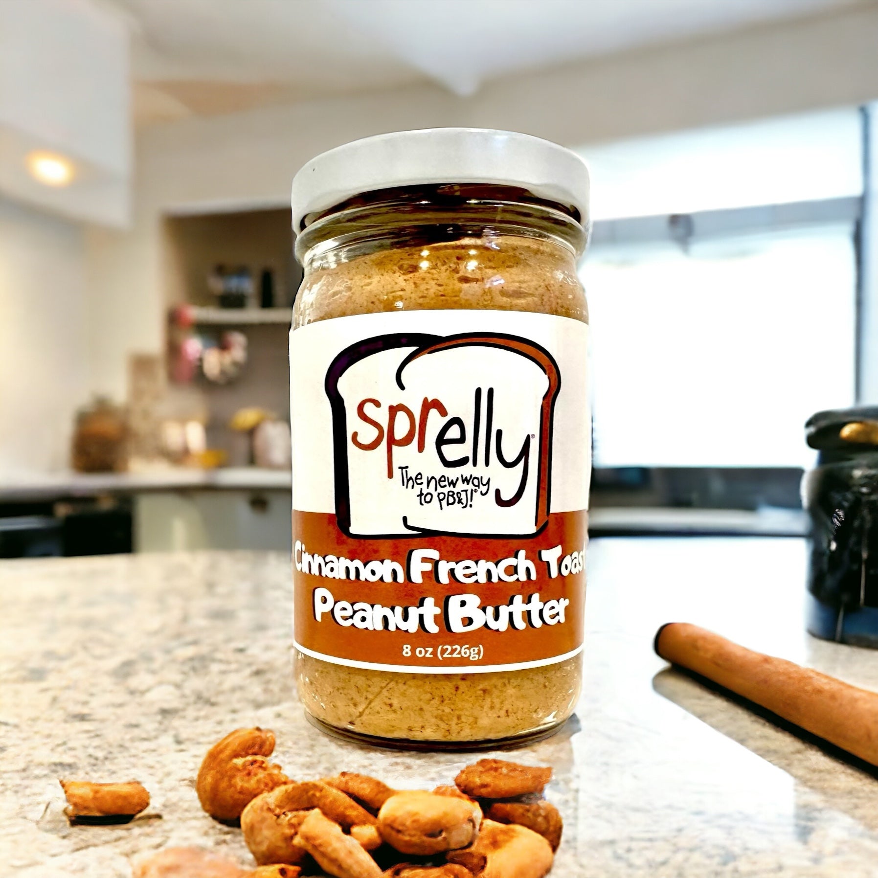 Imagine a place where the peanut butter tastes like cinnamon French toast. That exists here at Sprelly! Put it on a Granny Smith apple or add it to your morning granola and be swept away by the rising tide of flavor with hints of cinnamon, honey, maple, and peanut butter!