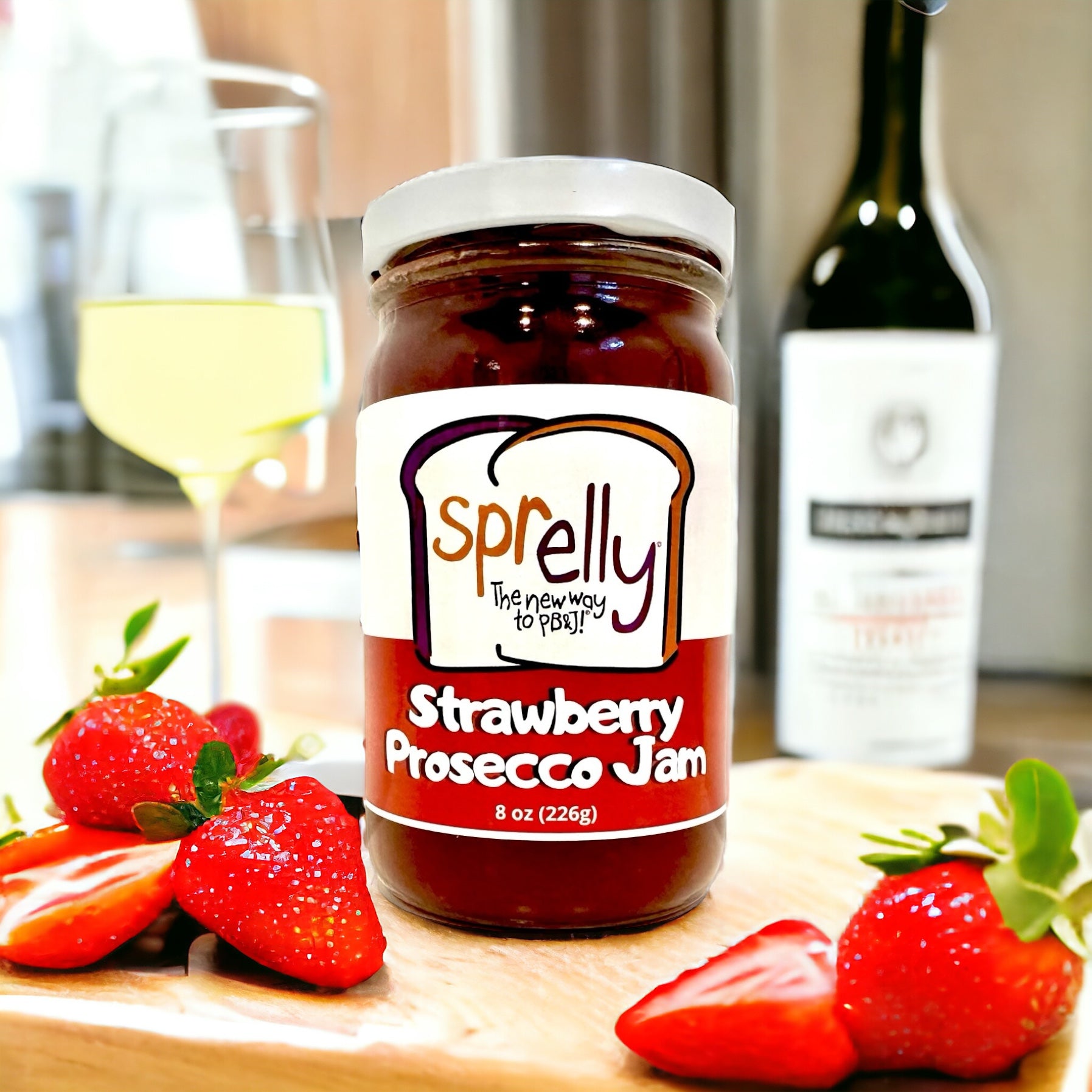 Ingredients: Strawberries, de-alcoholized sparkling wine, lemon juice, pectin, sugar